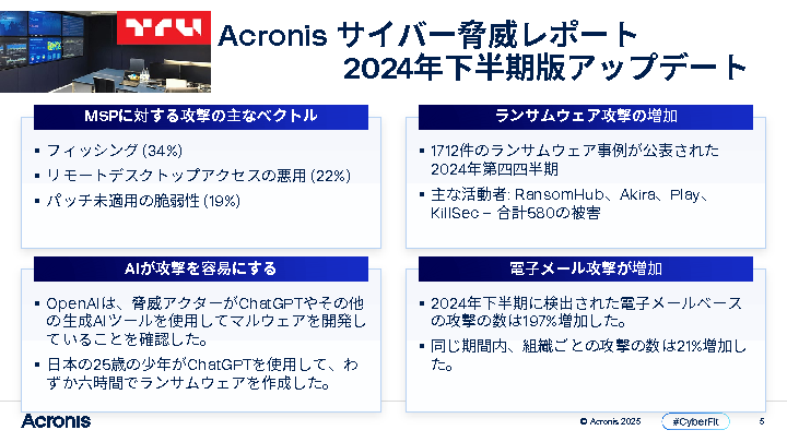 本セミナーでは、Microsoft 365環境における見えにくいリスクを可視化し、Acronis Cyber Protectによって実現できる統合型のデータ保護戦略をご紹介します。セキュリティ対策とバックアップ、長期保管・アーカイブ、さらにはリーガルホールドやコンプライアンス対応まで、バラバラな製品で対応していた領域を一元化し、煩雑な運用を簡素化しつつ、訴訟や監査など“いざという時”に備えた、信頼性の高いデータ保護体制を構築する具体的な方法を解説します。