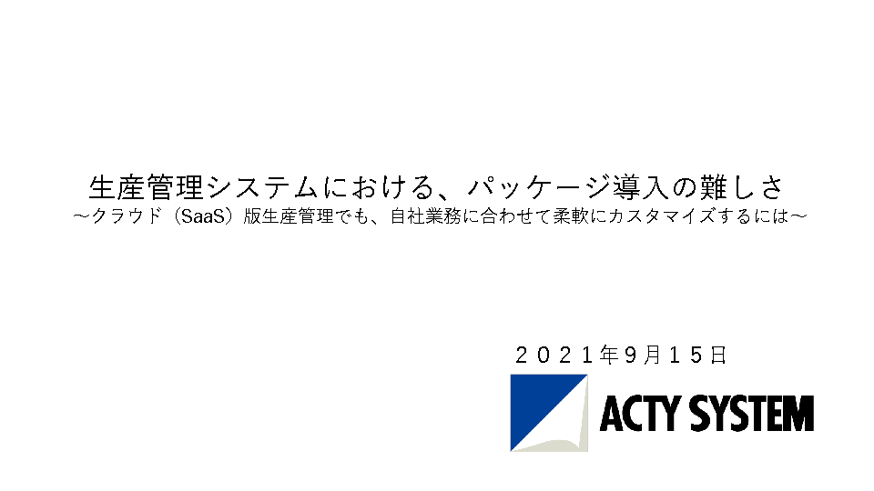10:05~10:45 生産管理システムにおける、パッケージ導入の難しさ~クラウド(SaaS)版生産管理でも、自社の強みを活かしながら業務の効率化を実現~
