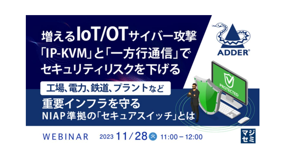 11:05~11:45 増えるIoT/OTサイバー攻撃、「IP-KVM」と「一方行通信」でセキュリティリスクを下げる ~工場、電力、鉄道、プラントなど重要インフラを守る、NIAP準拠の「セキュアスイッチ」とは~