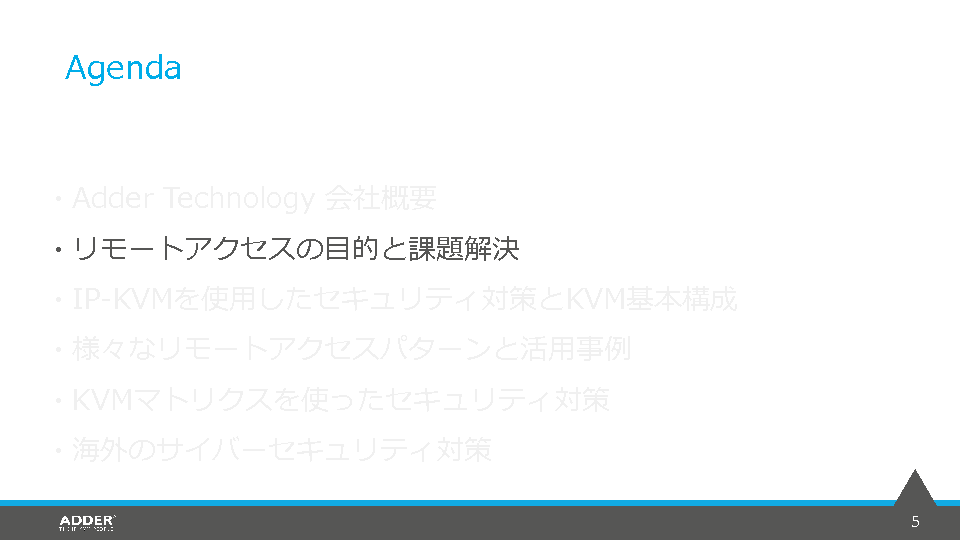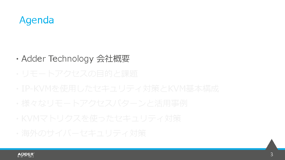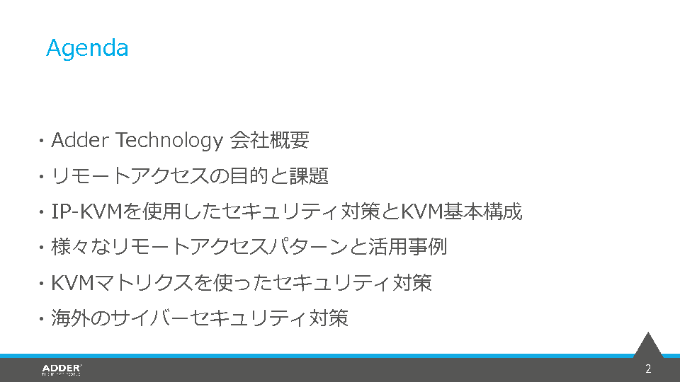 本セミナーでは、数枚の画面といった小規模な制御室から、数百台のモニタがある大規模なシステムまで幅広く対応可能な高性能IP-KVMである「ADDERLink INFINITYシリーズ」、「IPEPSシリーズ」、またマルチビューを実現する「CCS-MV」などを用いた様々なIP-KVMの構成の事例をご紹介いたします。
