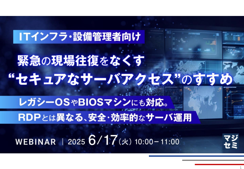 10:05~10:45 【ITインフラ・設備管理者向け】緊急の現場往復をなくす “セキュアなサーバアクセス” のすすめ