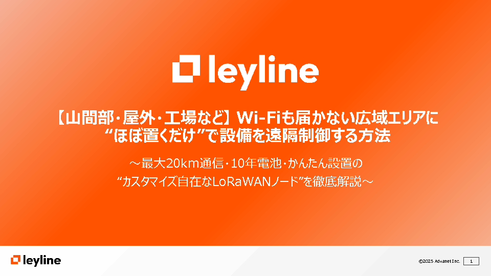 本セミナーでは、LoRaWAN通信をベースに、マイコンや各種インターフェースを搭載した、約4センチ四方のコンパクトなIoTノード『Leyline N1(レイライン・エヌワン)』を用いて、広域エリアにおける設備の遠隔監視・制御を実現した実例を交えながら、その仕組みや具体的な活用方法について詳しく解説します。