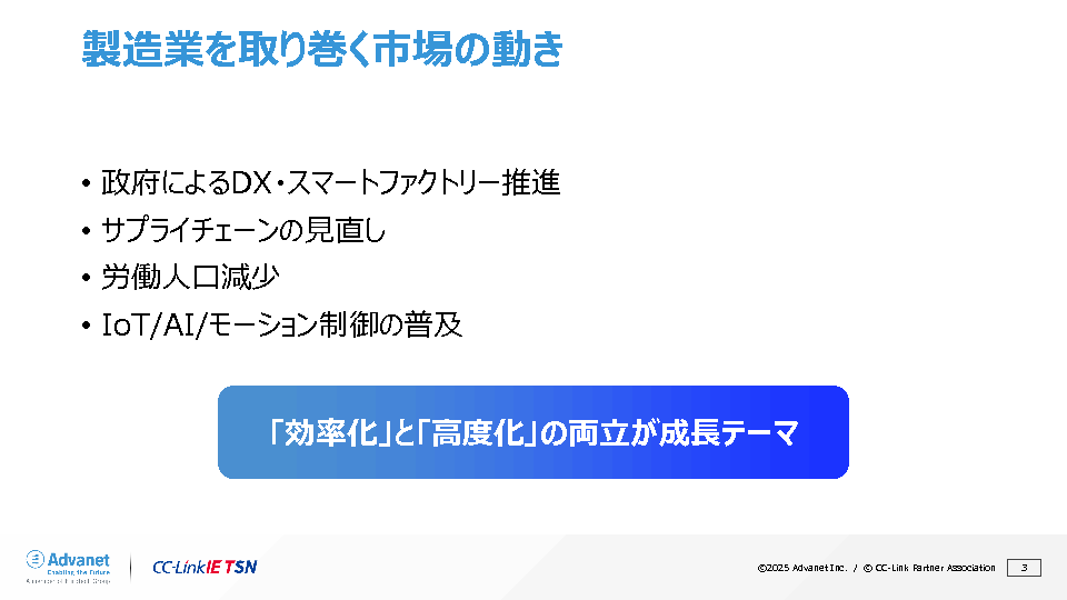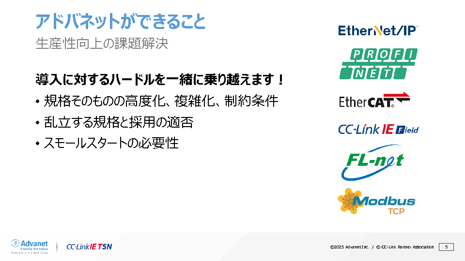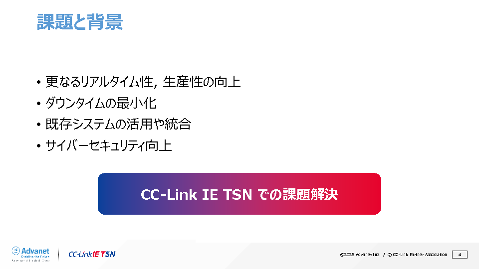 本セミナーでは、CC-Link IE TSN対応PCIeカード『AdEXP1589』を活用し、PCのCPU負荷を軽減しつつ、高速・大容量・高精度な同期制御通信を実現する方法をご紹介します。
