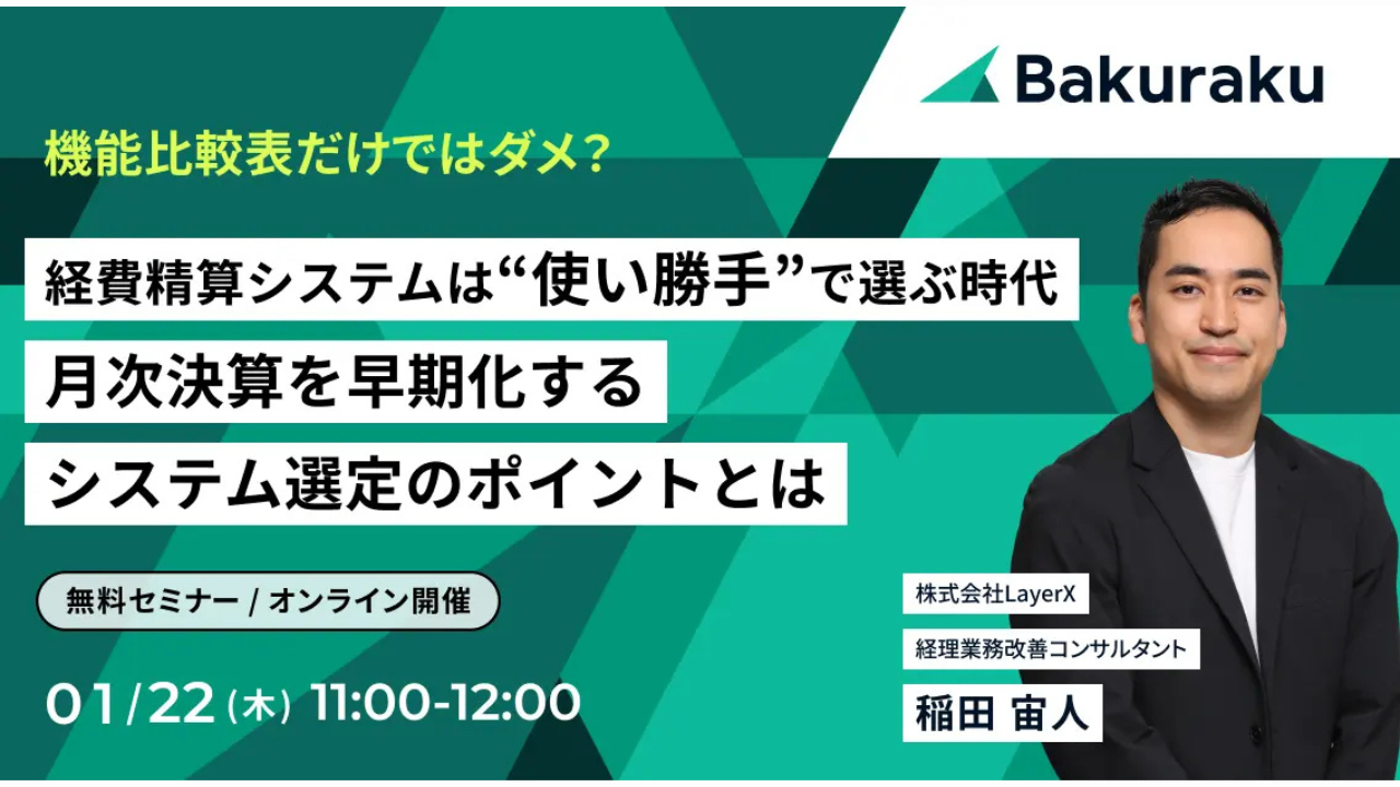 本セミナーでは、これから経費精算システムを導入・入れ替えを検討される企業の皆さまに向けて、