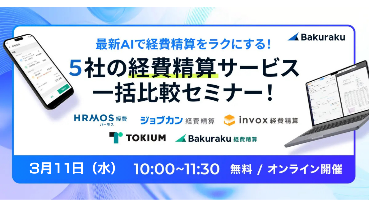 本セミナーでは、AIを活用して経費精算業務をよりスムーズにする人気5サービスを一度に比較できる特別セッションを開催します。