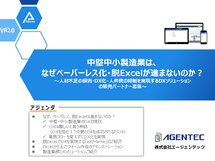 15:05~15:45 中堅中小製造業は、なぜペーパーレス化/脱Excelができないのか? ~人材不足の解消・DX化・人件費の抑制を実現するDXソリューションの販売パートナー募集~