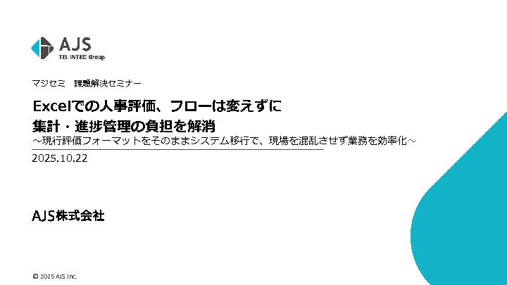 本セミナーでは、既存のExcelフォーマットや評価フローを変えることなく、そのままシステムに移行できるサービスをご紹介します。従来の評価シートやフローを活かしながら、自動集計や進捗のリアルタイム可視化を実現することで、担当者の負担を大幅に軽減します。また、インターフェースがExcelのままなので、新しいツールの使い方を覚える必要もなく、現場の混乱を招かずにスムーズな導入が可能です。さらに、評価運用を補完する1on1の仕組みにも対応しており、日常的な人材育成を支援できる点も特長の一つです。現行のExcel評価シートをそのまま活かしながら評価業務の効率化を実現したい企業様におすすめの内容です。