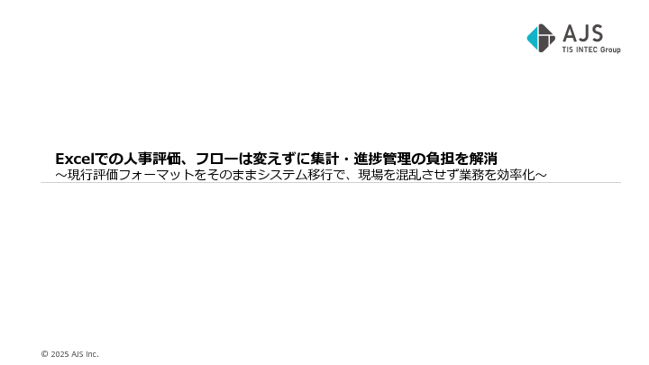 13:05~13:45 Excelでの人事評価、フローは変えずに集計・進捗管理の負担を解消 〜現行評価フォーマットをそのままシステム移行で、現場を混乱させず業務を効率化〜