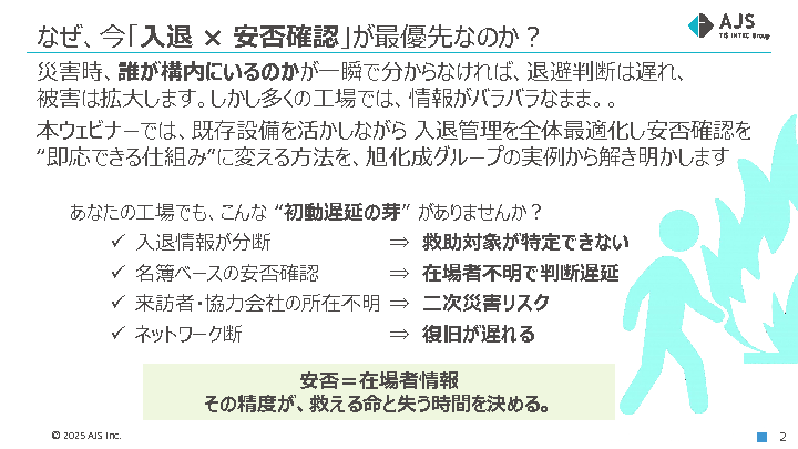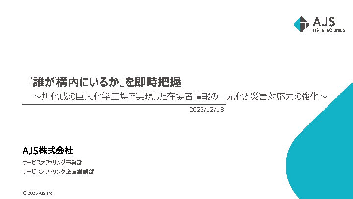 13:05~13:45 誰が構内にいるか”を即時把握 ~旭化成の巨大化学工場で実現した、在場者情報の一元化と災害対応力の強化~