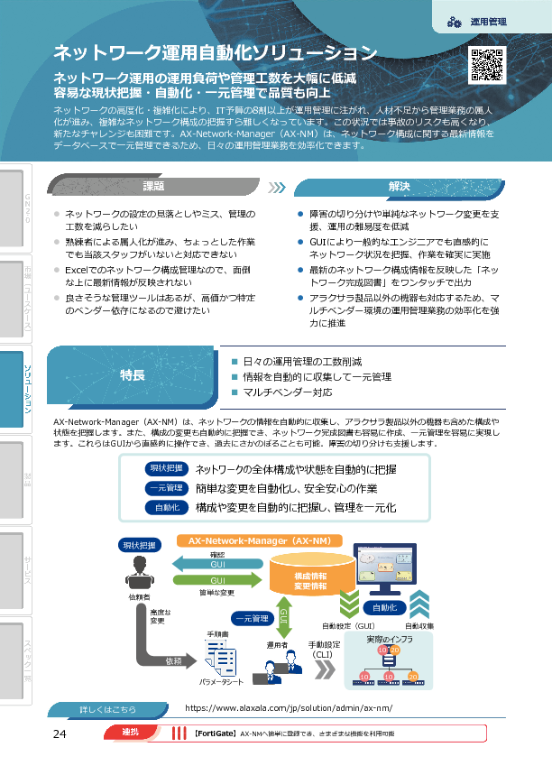 本セミナーでは、アラクサラネットワークス社のソリューション「AX-Network-Manager(AX-NM)」によってネットワークの管理負荷を軽減し、障害対応の迅速化を図る方法を解説します。