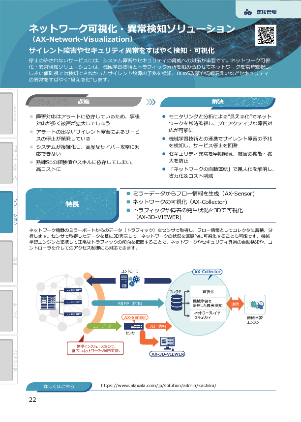 本セミナーでは、ネットワークを見える化することにより、セキュリティ異常をすばやく検知・可視化するアラクサラネットワークス社の「AX-Network-Visualization(AX-NV)」を紹介します。
