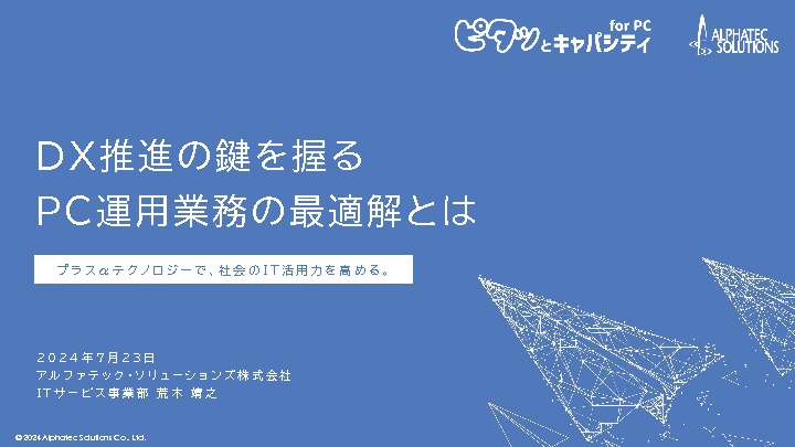 本ウェビナーでは、こうしたIT担当者の状況を解決する手段として、PCライフサイクルマネジメントサービス「ピタッとキャパシティ for PC」をご紹介します。