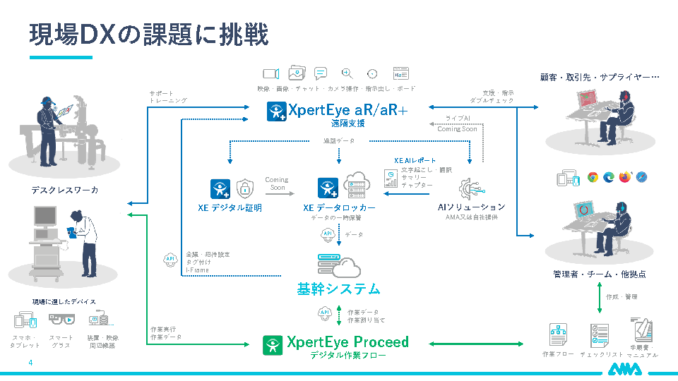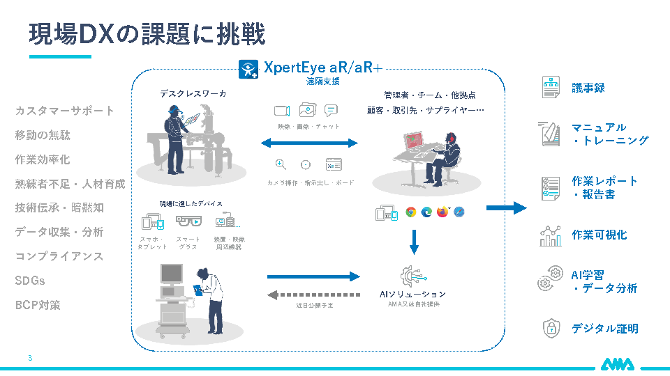 遠隔支援の〈音声・動画〉を「現場向けAI」が学習し、マニュアル化や、アシスタントとして活用