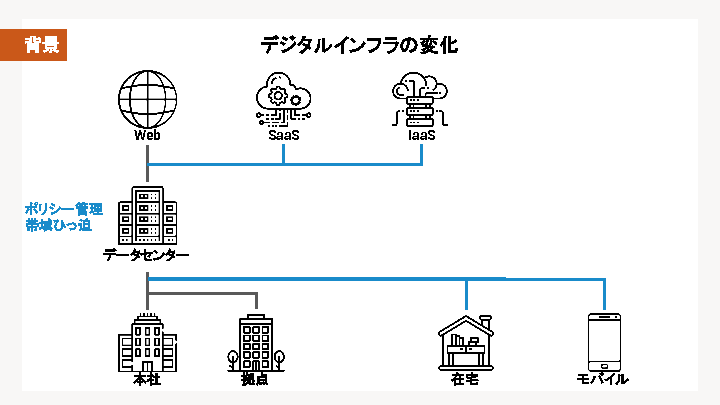 新型コロナとDX推進の影響でテレワークが急速に普及し、従業員のリモートアクセスが増加。大量のトラフィックで、企業内のネットワーク負荷が高まっています。
