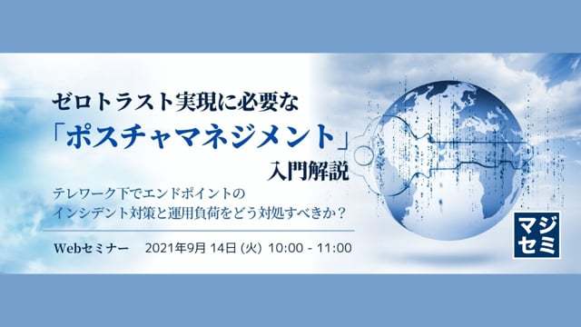 今回のセミナーでは、ゼロトラスト実現に向けて情報システム担当者が押さえておくべきポスチャマネジメントの基本を解説いたします。併せて、自律的コントロールと自動対策が可能な「秘文 統合エンドポイント管理サービス」の機能と特長を紹介します。