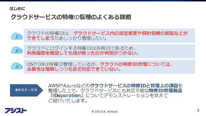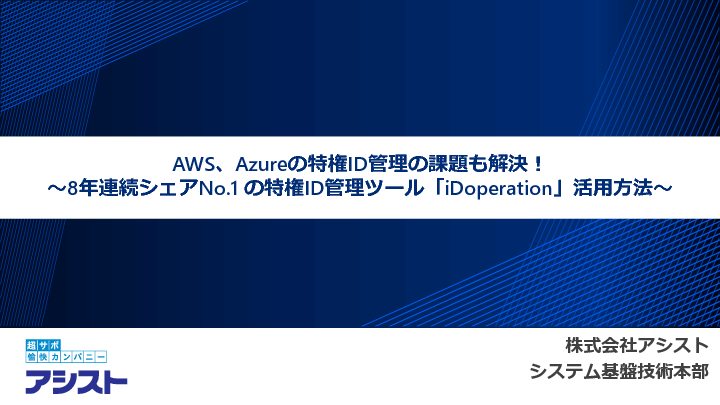 16:05~16:45 AWS、Azureの特権ID管理の課題も解決 〜8年連続シェアNo.1(※)の特権ID管理ツール「iDoperation」活用方法〜