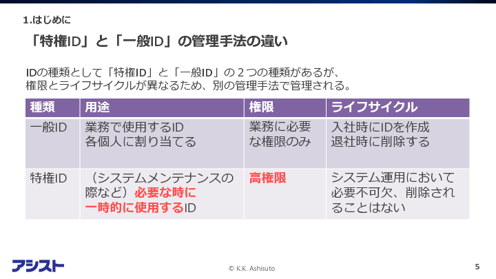 組織内のシステムやネットワークを管理するために必要なアカウントである「特権ID」は、重要なシステムのアクセスや特別な操作が可能であるため、適切に管理・運用することが求められます。