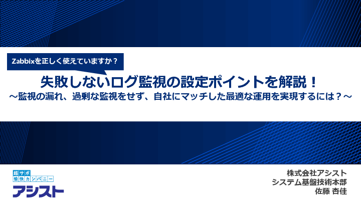 10:05~10:45 Zabbixを正しく使えていますか? 失敗しないログ監視の設定ポイントを解説!~監視の漏れ、過剰な監視をせず、自社にマッチした最適な運用を実現するには?~