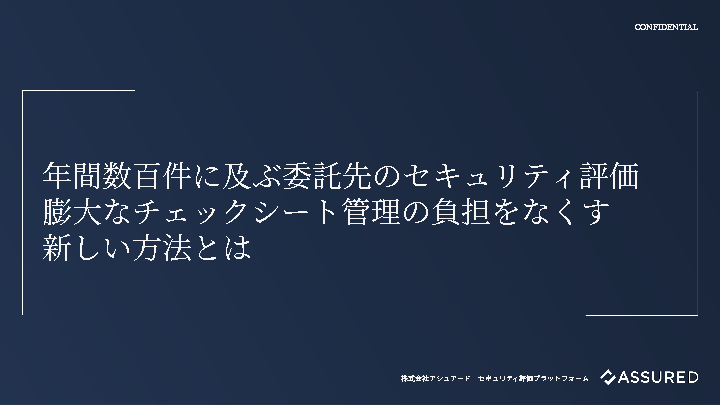 本セミナーでは、アシュアードが提供する「企業評価サービス」を活用し、従来のチェックシート運用の負担を軽減する新しい方法を紹介します。有資格のセキュリティ専門家がISOやNISTなどの国際標準に準拠した基準で評価を代行し、網羅性と客観性を担保します。さらに評価結果はプラットフォームで一元管理され、虚偽回答防止や最新リスクへの迅速な対応が可能となります。これにより、委託先評価にかかる工数を大幅に削減すると同時に、サプライチェーン全体のセキュリティ品質を高めることができます。効率化と信頼性強化を両立した実践的アプローチを具体的な事例を交えてご紹介します。