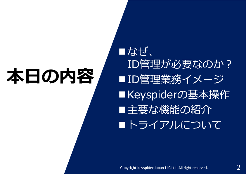 本セミナーでは、オンプレAD/AzureAD、又は人事システムのユーザーを、各種クラウドやオンプレAD/AzureAD、及びオンプレミスのシステムに自動連携する方法について、クラウドID管理サービス「Keyspider」を使って具体的な操作方法を解説します。