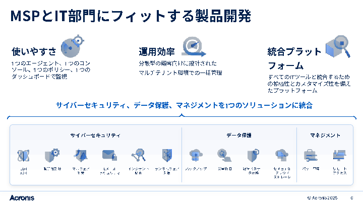 そのため、セキュリティを中心としたサイバープロテクションを強化するMSP(マネージドサービスプロバイダー)事業が、安定した新たな収益源として期待されるようになりました。