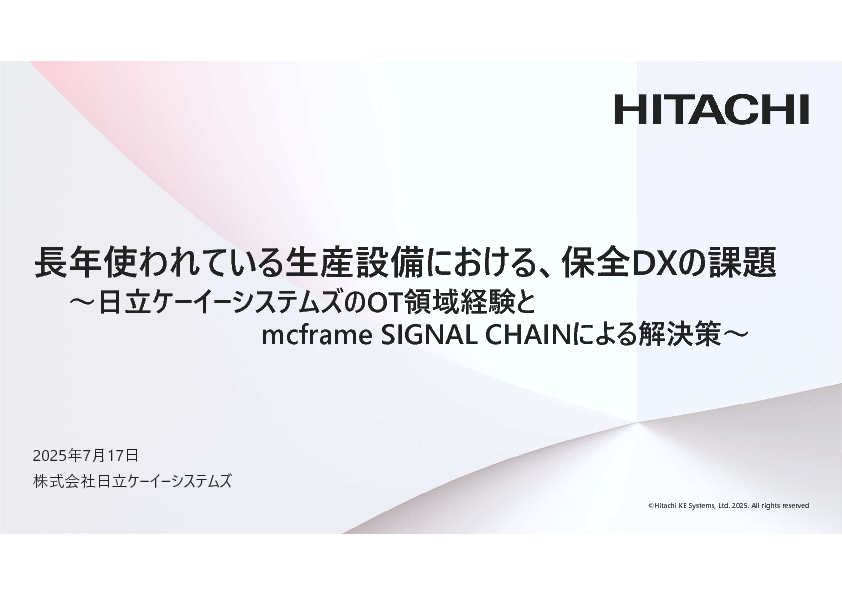 14:05~14:45 長年使われている生産設備における、保全DXの課題 ~日立ケーイーシステムズのOT領域経験とmcframe SIGNAL CHAINによる解決策~
