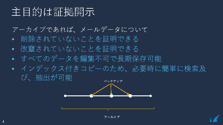 アーカイブされるデータの中でも、メールデータは法的な紛争・訴訟の発生時の重要な監査証跡として取り扱われてきました。また、クラウドサービスやソーシャルメディアの普及、ビッグデータの増加などで、時間とともにデータ量が膨大になったり、取り扱うデータの種類が多岐にわたっています。その結果、アーカイブ環境では「Microsoft 365」などのクラウドサービスにも適するスケーラビリティやコスト効率、柔軟なデータアクセス、運用の軽減などがより強く求められてきました。