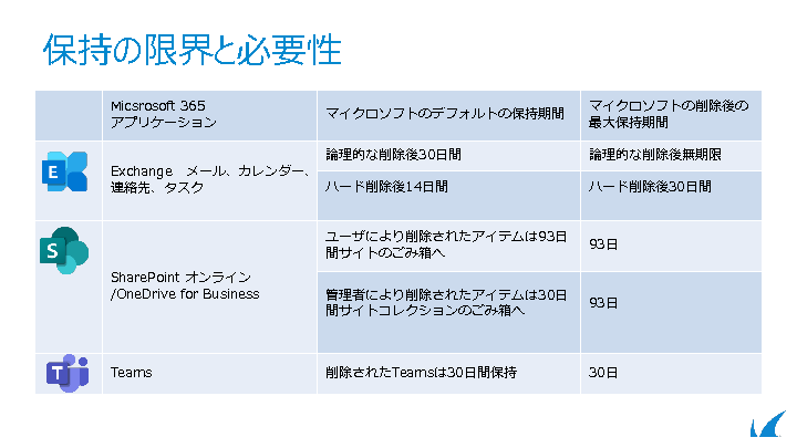また、退職者アカウントの削除後、Exchange OnlineとOneDriveのデータは30日間保持され、その後完全に削除されます。これに気づかず、消失後に対応できない企業も少なくありません。さらに「Entra ID(旧Azure AD)」やランサムウェア対策のバックアップにまで目が届いていないケースも見受けられます。