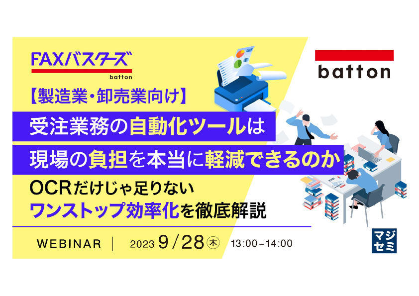 本セミナーでは、複数の先端技術を組み合わせた受注業務DXツール「FAXバスターズ」によるワンストップ効率化について、デモを交えて紹介します。