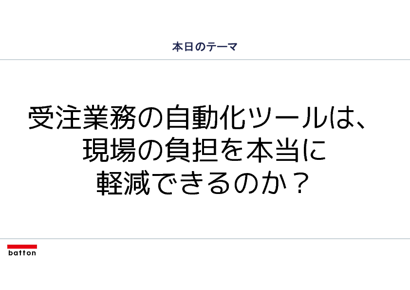 13:05~13:45 受注業務の自動化ツールは、現場の負担を本当に軽減できるのか