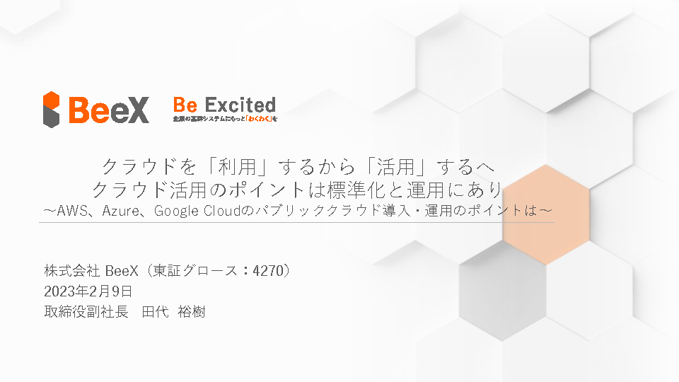 13:05~13:45 クラウドを「利用」するから「活用」するへ クラウド活用のポイントは標準化と運用にあり〜AWS,Azure, Google Cloudのパブリッククラウド導入・運用のポイントは〜