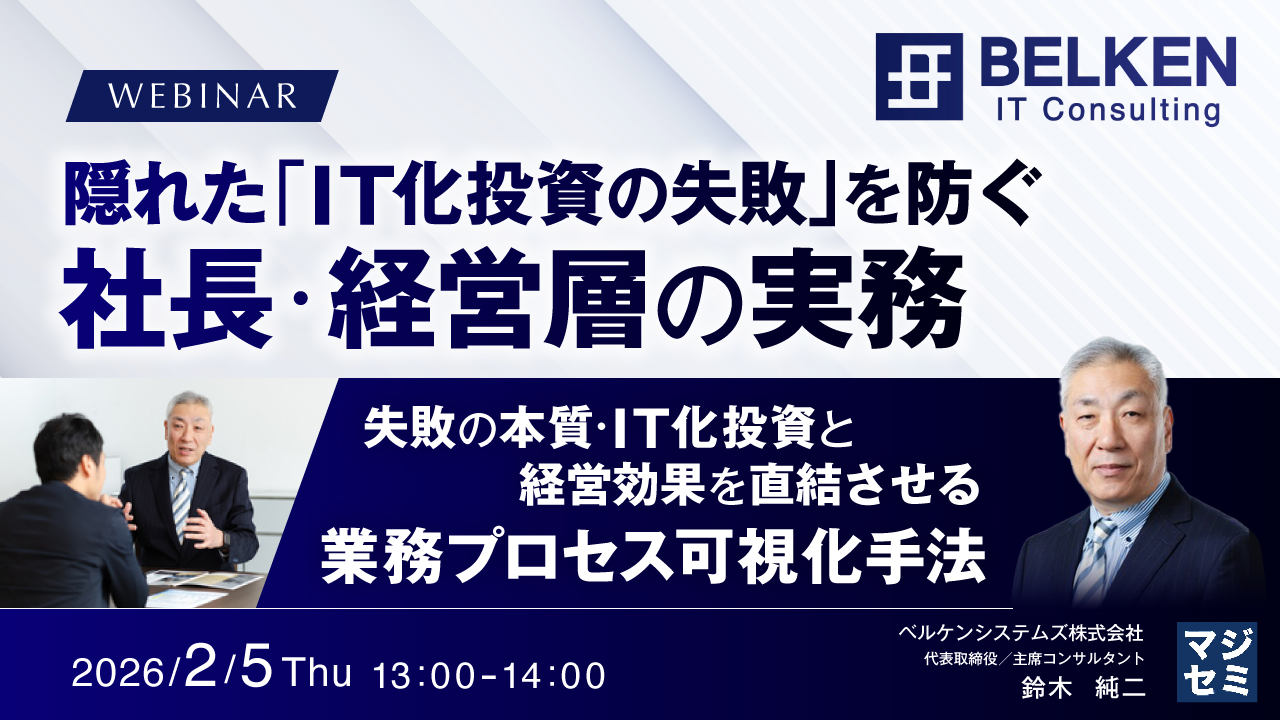 13:05~13:45 隠れた「IT化投資の失敗」を防ぐ社長・経営層の実務 ~失敗の本質・IT化投資と経営効果を直結させる業務プロセス可視化手法~
