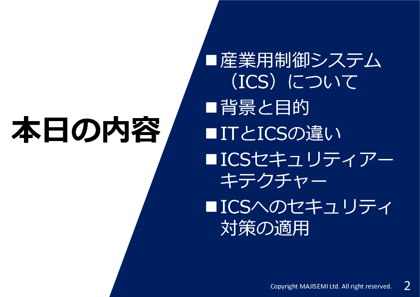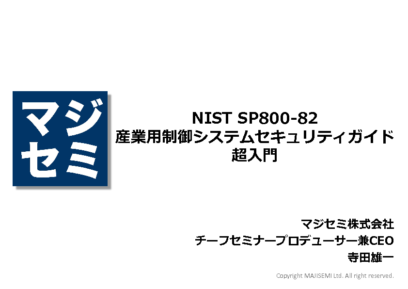 本セミナーでは、産業用制御システムのセキュリティ基準となっている、NIST SP800-82(産業用制御システムセキュリティガイド)について、わかりやすく解説します。