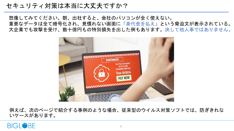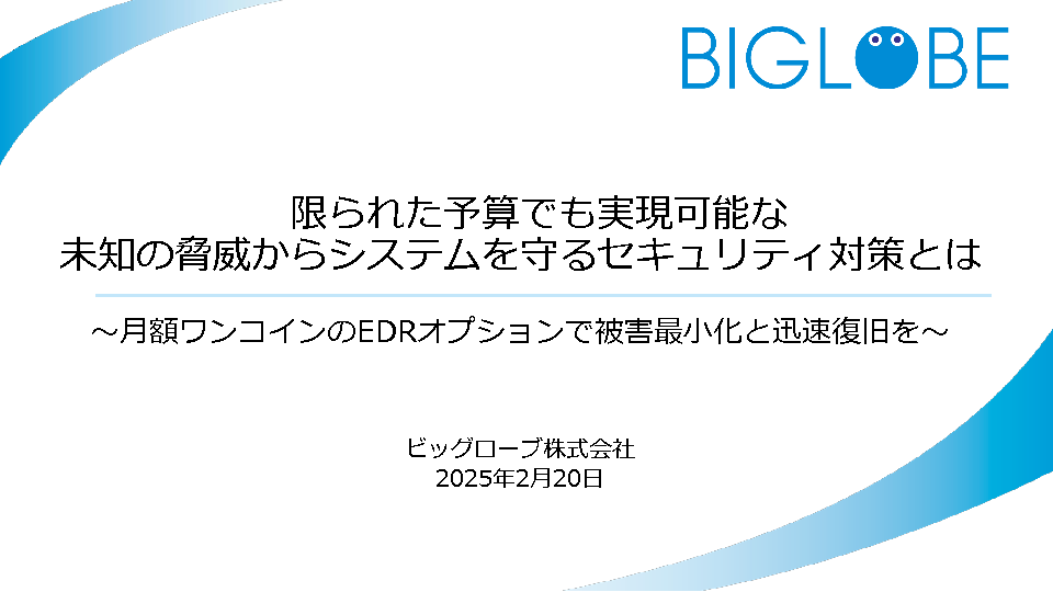 13:05~13:45 限られた予算でも実現可能な未知の脅威からシステムを守るセキュリティ対策とは~月額ワンコインのEDRオプションで被害最小化と迅速復旧を~