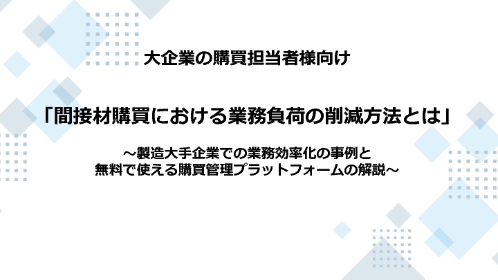 11:05~11:45 【大企業の購買担当者様向け】間接材購買における業務負荷の削減手法とは ~製造大手企業での業務効率化の事例と、無料で使える購買管理プラットフォームの解説~