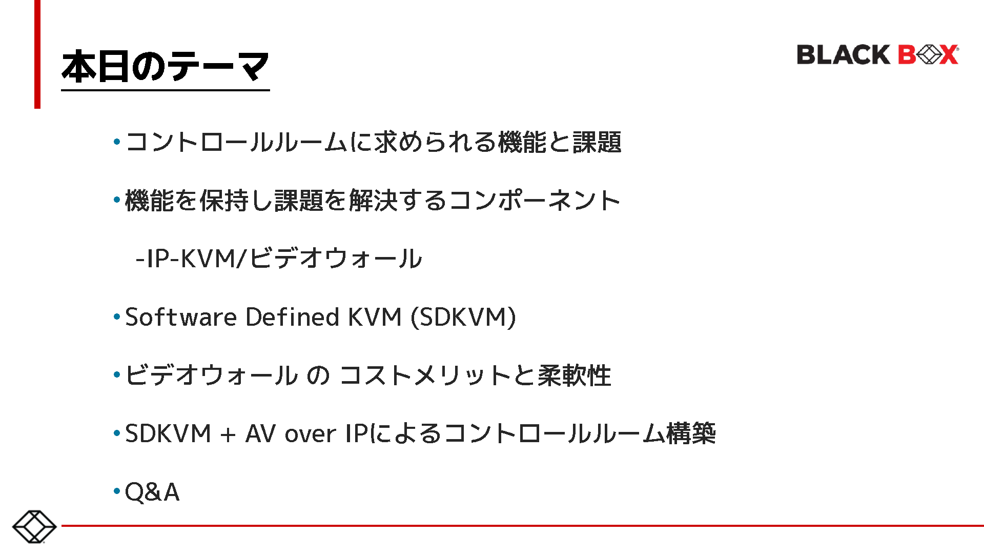 実際の操作をご覧いただきながら、Software Defined KVMの特長と今後のコントロールルームや監視制御室の構築/リプレースを検討している方に向けて、検討にあたり考慮すべき点をわかりやすく解説いたします。