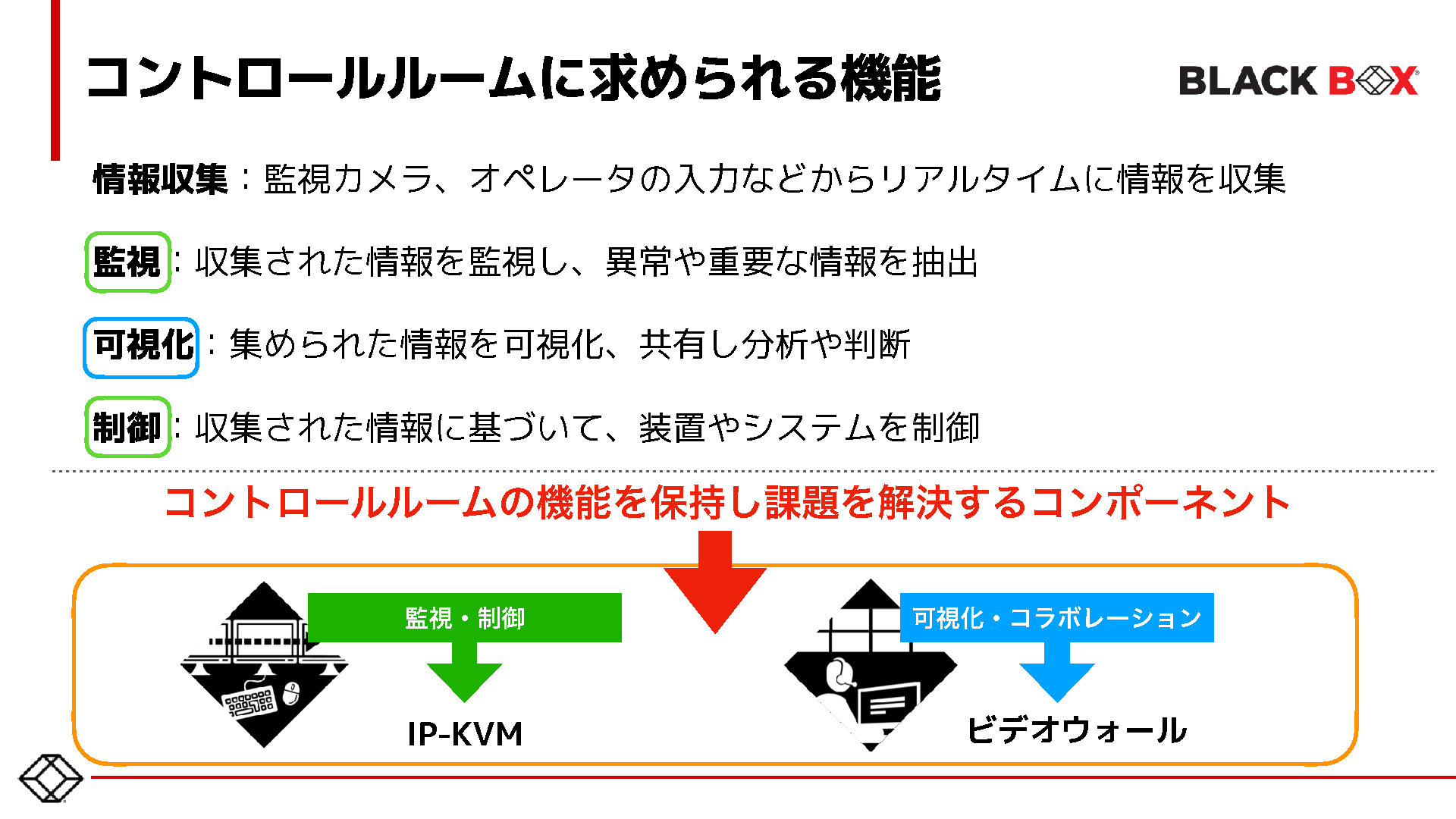 14:05~14:45 電力・ガス・水道、空港・鉄道、警察・消防、製造、ビル管理などにおけるコントロールルームの課題とは?~H.264/H.265対応 IPカメラの映像を取り込める、進化したIP-KVMによる監視制御システム~