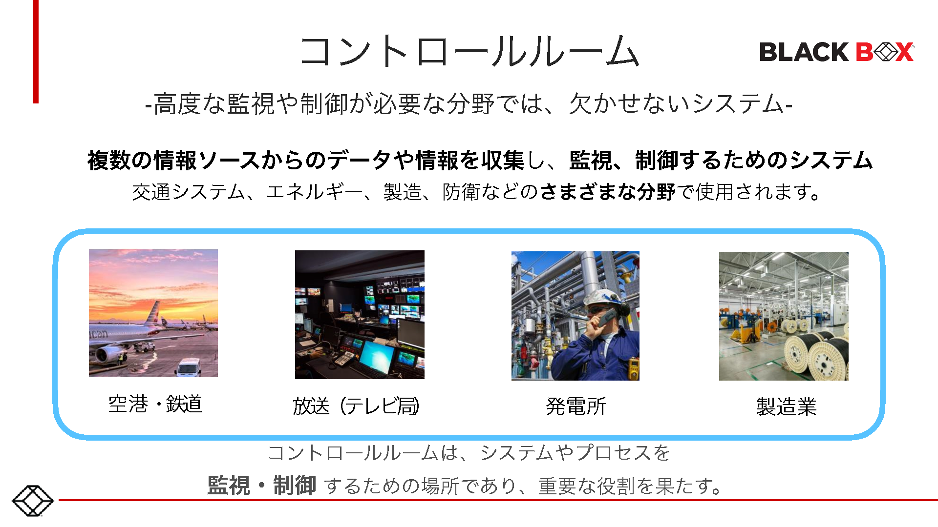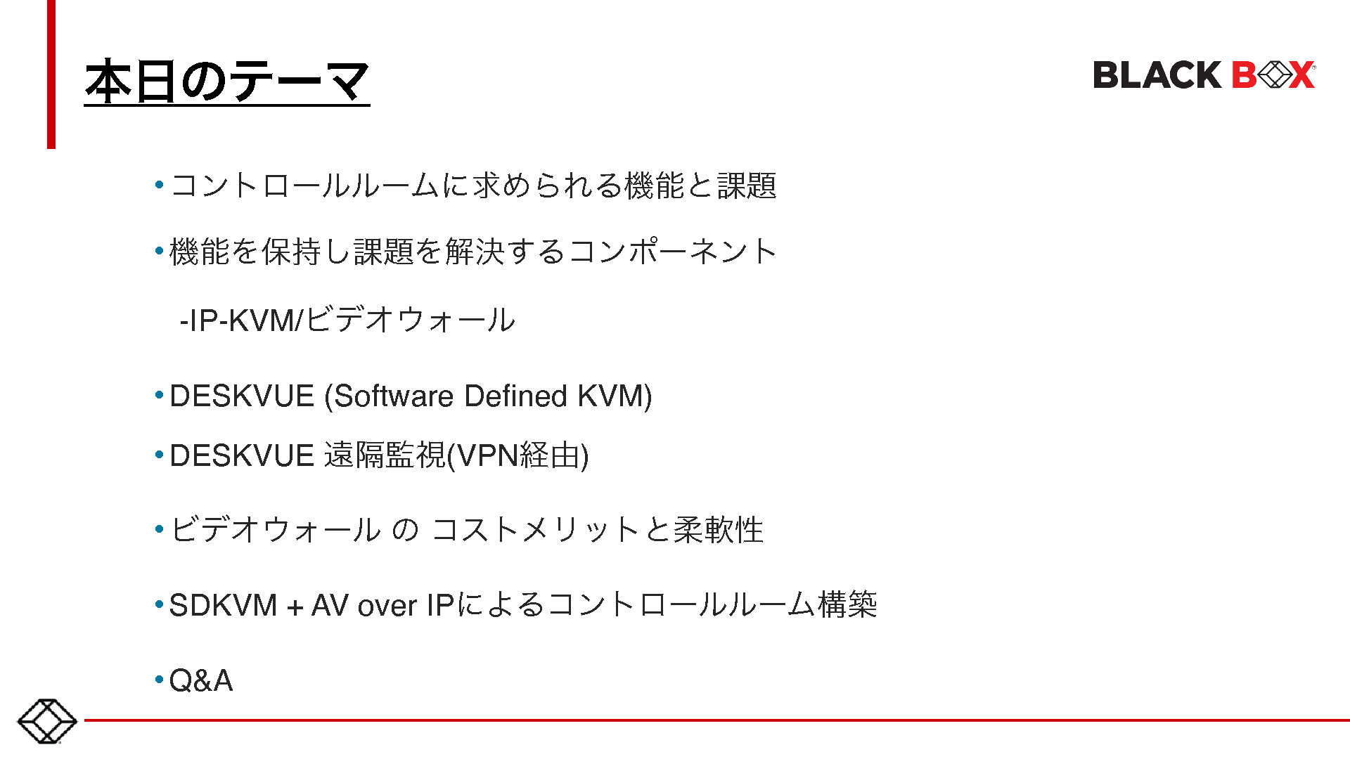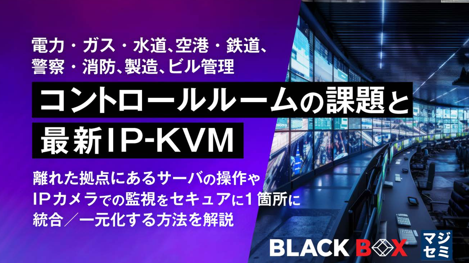 14:05~14:45 電力・ガス・水道、空港・鉄道、警察・消防、製造、ビル管理 コントロールルームの課題と最新IP-KVM~離れた拠点にあるサーバの操作やIPカメラでの監視をセキュアに1箇所に統合/一元化する方法を解説~