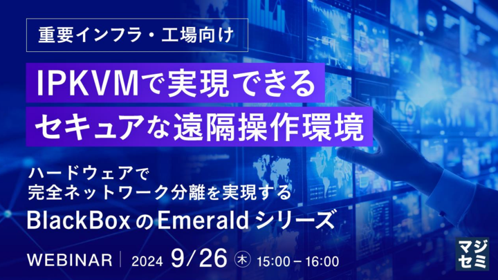 15:05~15:45 【重要インフラ・工場向け】IPKVMで実現できるセキュアな遠隔操作環境~ハードウェアで完全ネットワーク分離を実現する、BlackBoxのEmeraldシリーズ~
