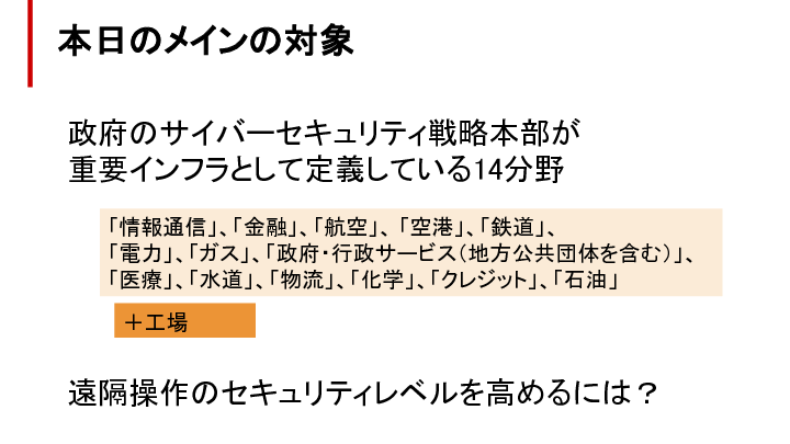 また、リモートデスクトップなどの方式では、暗号化などが施されてはいますが、外部から遠隔操作したい対象までIPネットワークでのルートが出来てしまい、ハッキングに利用される可能性があります。
