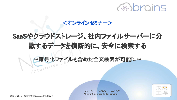 15:05~15:45 SaaSやクラウドストレージ、社内ファイルサーバーに分散するデータを横断的に、安全に検索する ~暗号化ファイルも含めた全文検索が可能に~