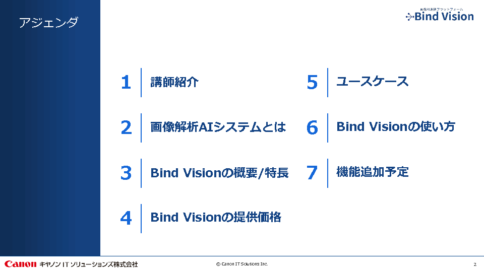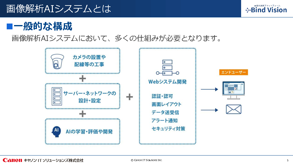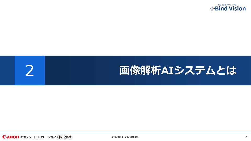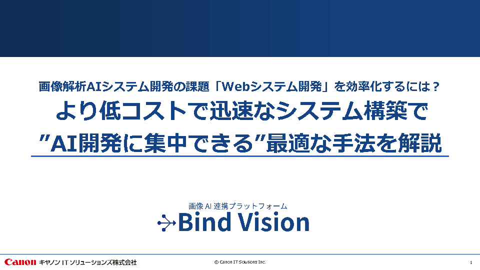 画像解析AIシステムにおけるWebシステムの開発を効率化させる具体的なソリューションとして、画像AI連携プラットフォーム「Bind Vision」を提案。デモ画面や導入事例、競合比較などを交えて、画像解析AIシステムにおけるWebシステム開発の課題を、どのように解決できるかをご紹介します。