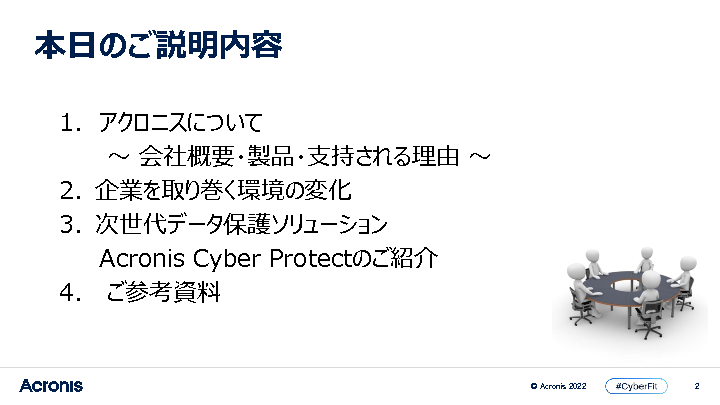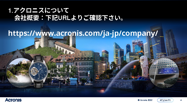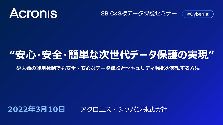 14:15~14:45 お客様に支持される「Acronis Backup」のご紹介 簡単・安心・安全なデータマネジメントの構築実現に向けて~「Acronis Cyber Protect Cloud」の優位性・機能・デモ(アクロニス・ジャパン株式会社)