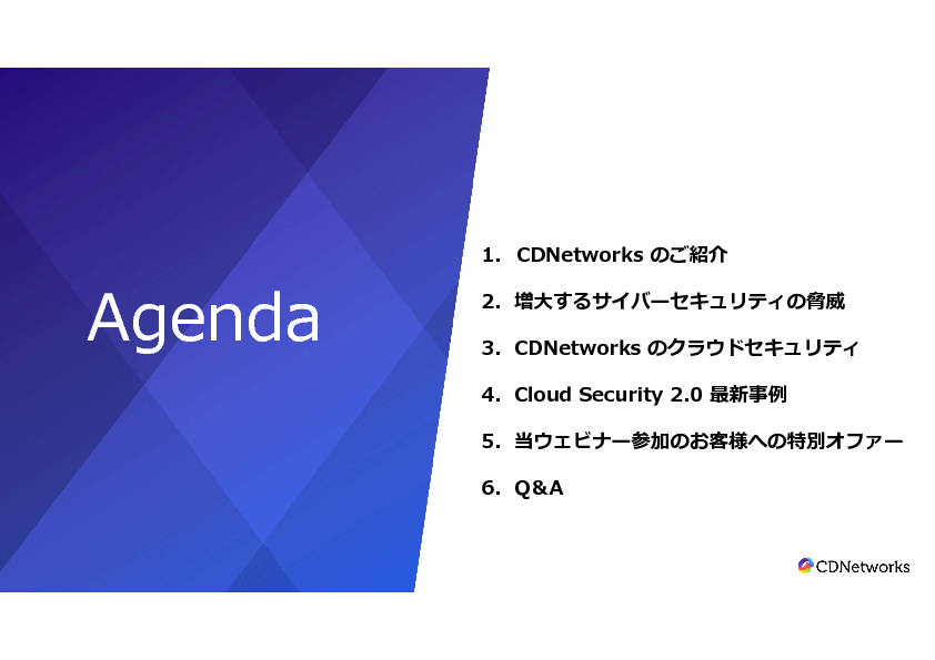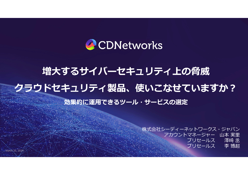 本セミナーでは、どのような観点でクラウドセキュリティ製品を選定し運用すればよいのかを解説するとともに、グローバルなCDNベンダとしての経験を基に、「リスクへの対策」と「脅威への対処」が可能なセキュリティサービスをご紹介いたします。