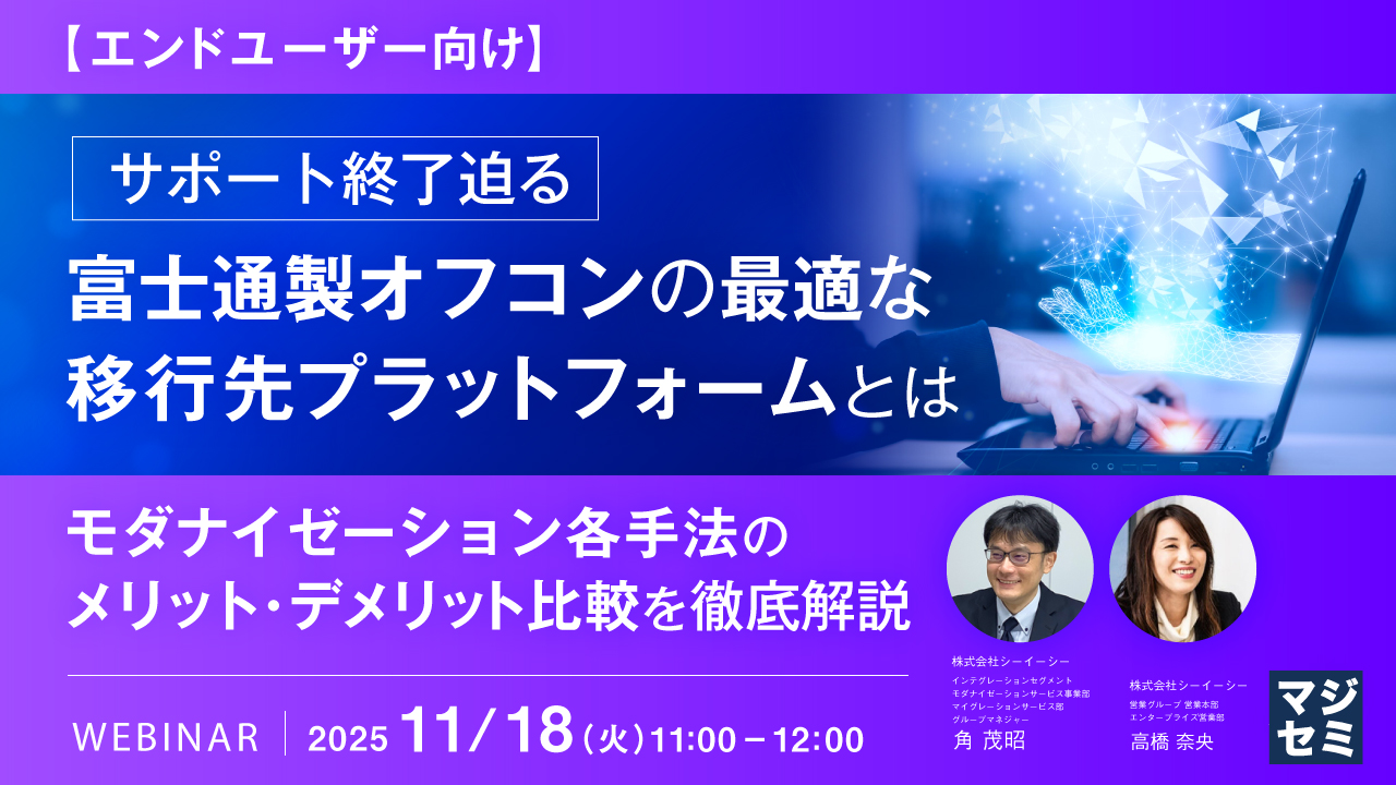 11:05~11:45 【エンドユーザー向け】サポート終了迫る、富士通製オフコンの最適な移行先プラットフォームとは