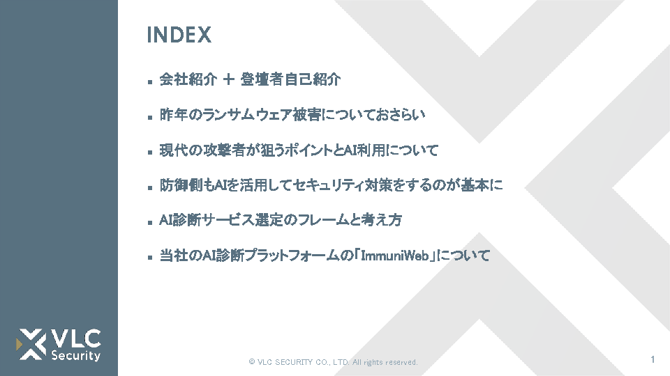 本セミナーでは、こうした課題に応える新たなアプローチとして、AIプラットフォーム「ImmuniWeb」と、ホワイトハッカーによる検証を組み合わせた「VLCセキュリティ診断ソリューション」をご紹介します。