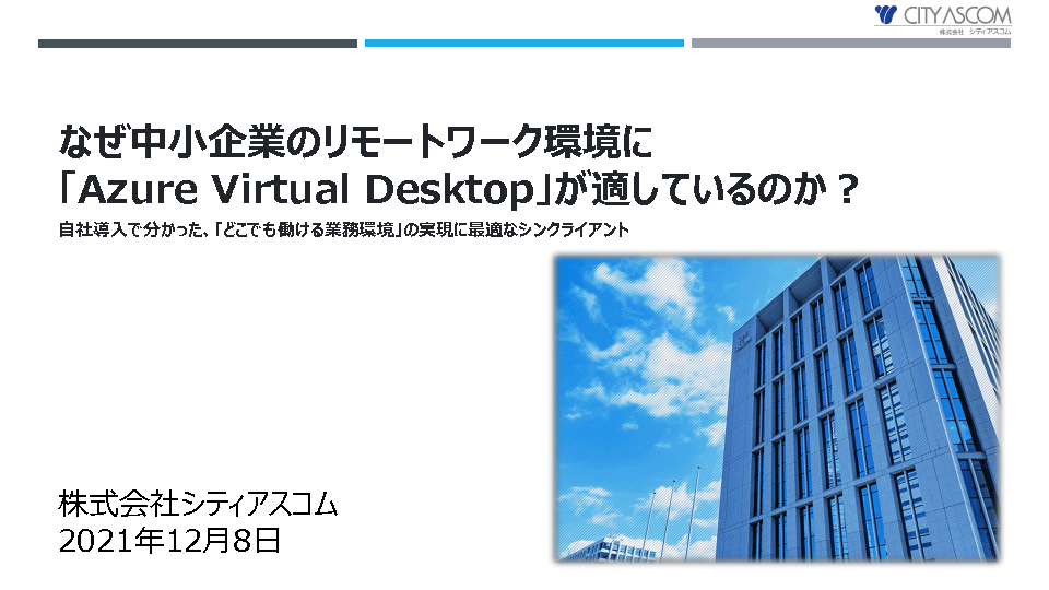 本セミナーでは、そうした業務PC、業務環境に関する運用管理の課題に対する解決策として「Azure Virtual Desktop」を紹介します。