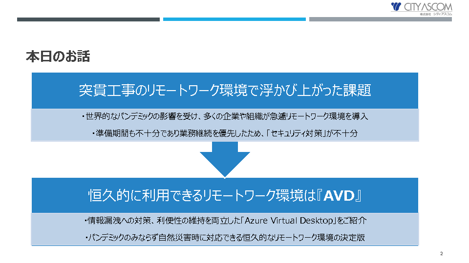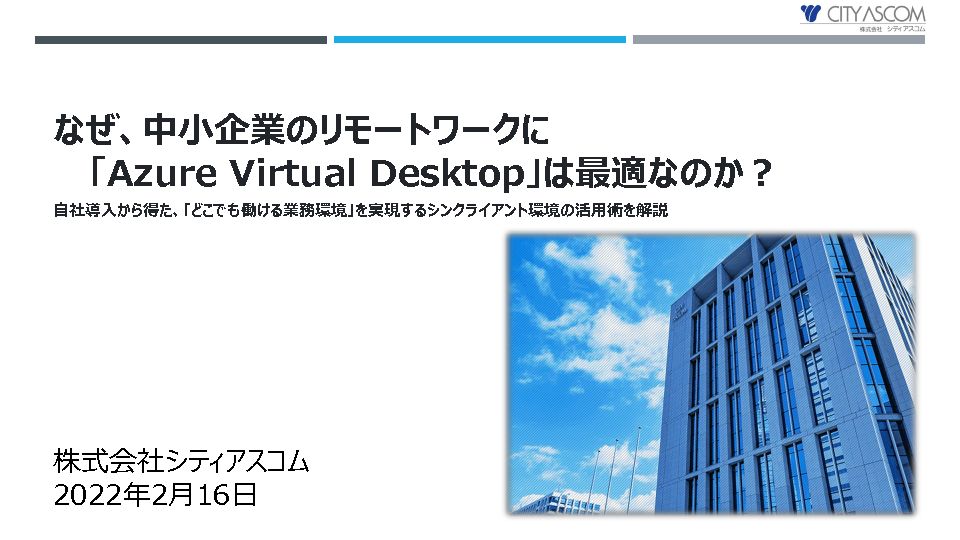 14:05~14:45 なぜ、中小企業のリモートワークに「Azure Virtual Desktop」は最適なのか? ~自社導入から得た、「どこでも働ける業務環境」を実現するシンクライアント環境の活用術を解説~