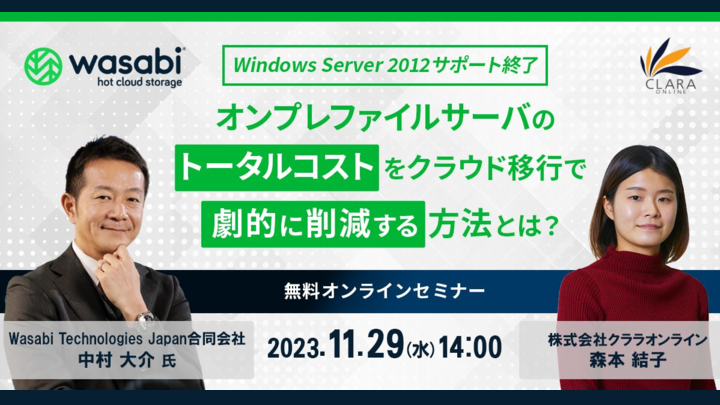 Windows Server 2012のサポートが終了に伴い、オンプレからの移行にお悩みの方に向けて、Wasabiを利用することによりスムーズかつ低コストにクラウド移行を実現する方法もご紹介します。