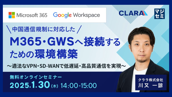 14:05~14:45 中国通信規制に対応したM365・GWSへ接続するための環境構築 ~適法なVPN・SD-WANで低遅延・高品質通信を実現~